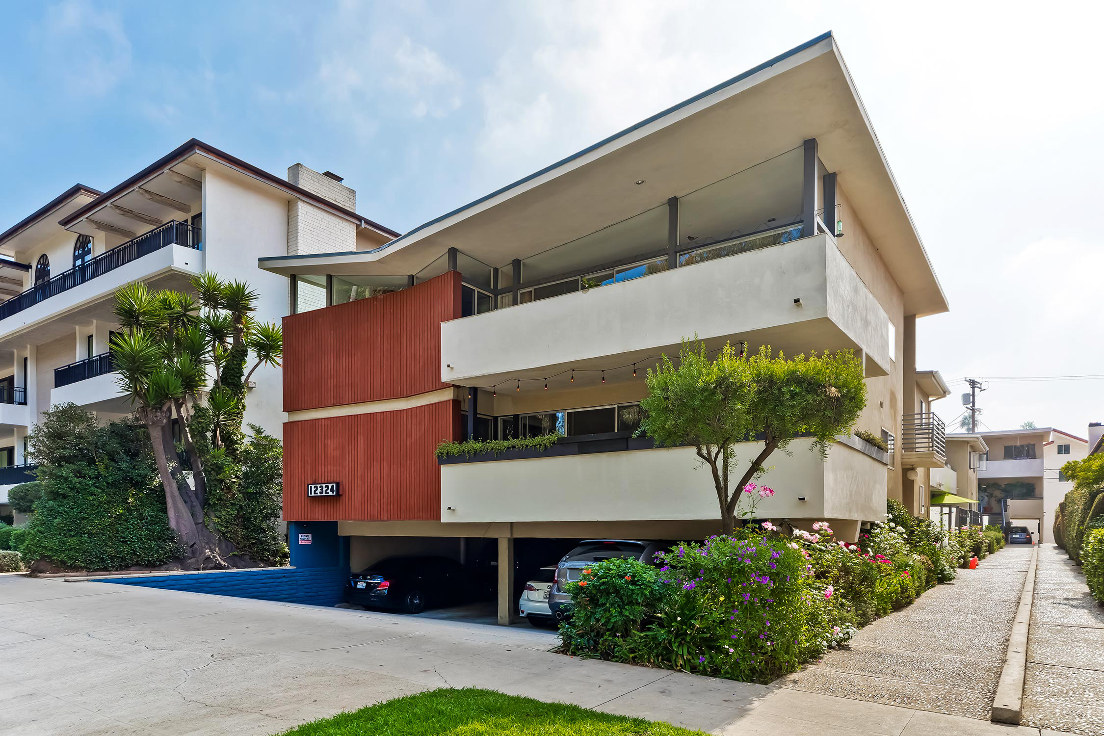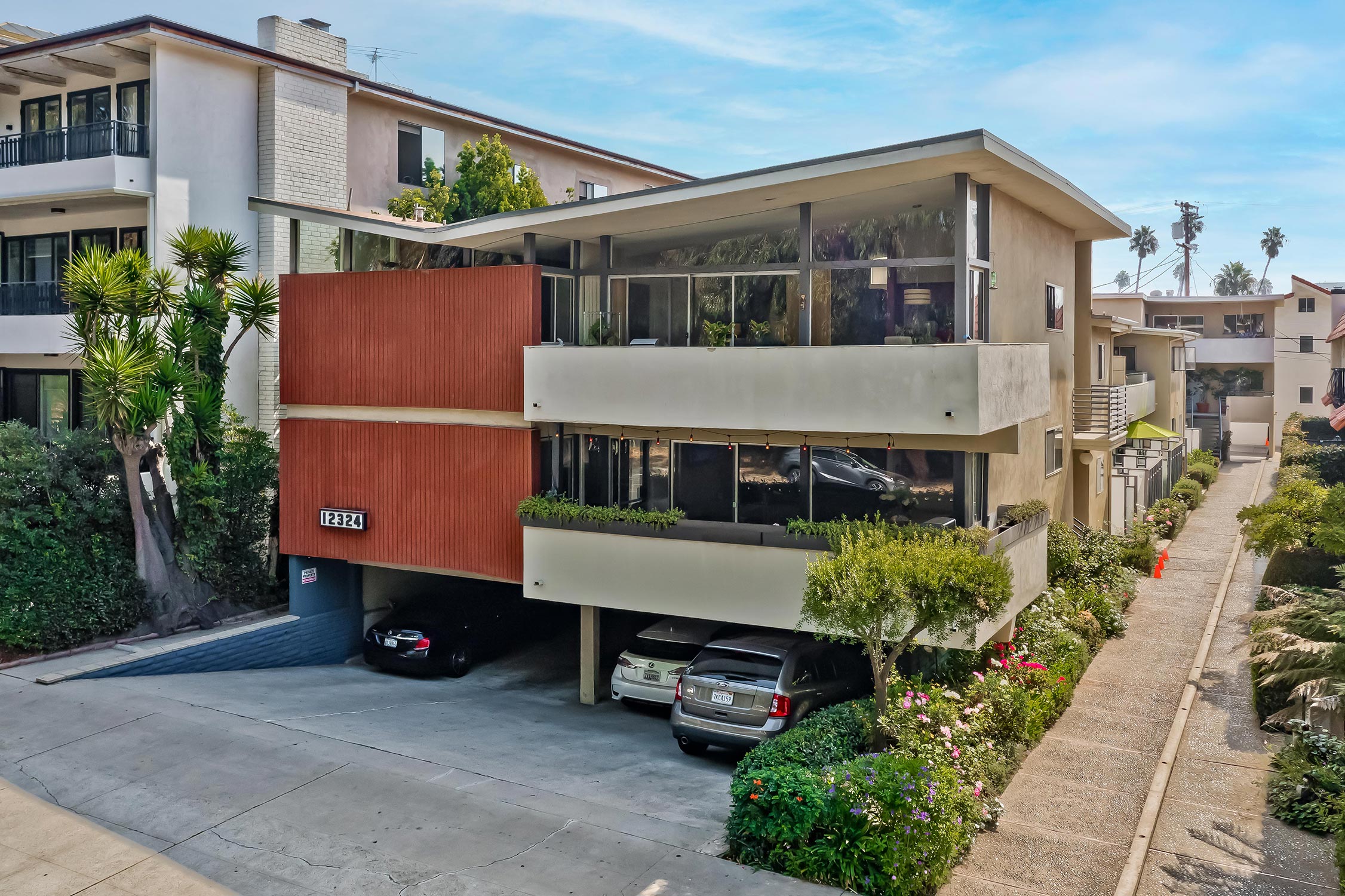 First time ever on the market, 12324 Montana Avenue features 10 large and unique apartment homes housed in a beautiful Mid-Century-Modern style building located in prime Brentwood. Adjacent to the Brentwood Country Club and surrounded by luxury condos and multi-million-dollar homes, the 1958 two-story building showcasing its distinctive Butterfly-Roof was originally designed by Alfred T. Wilkes, whose homes can be found in Bel-Air, Holmby Hills & Hancock Park.